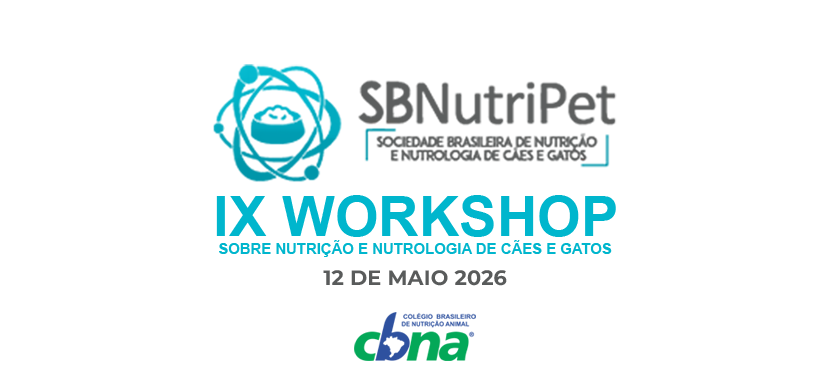 O Colégio Brasileiro de Nutrição Animal (CBNA) e a Sociedade Brasileira de Nutrição e Nutrologia de Cães e Gatos (SBNutriPet) têm o prazer de apresentar seus eventos para 2026: o XXV CONGRESSO CBNA PET e o IX Workshop sobre Nutrição e Nutrologia de Cães e Gatos, respectivamente.